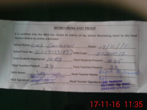 | Certified that this School was Inspected by the Undersigned MEA/DMO Today and the Information Stated Above is as Per Record. | |||||