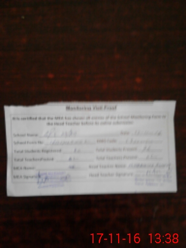 | Attendance Register | Head Teacher | MEA with School | Visit Proof |