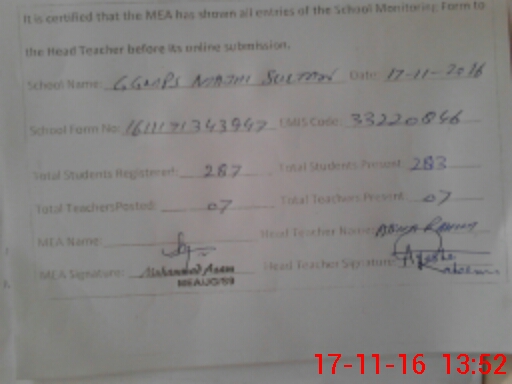 | EMIS Code: 33220846 | Name of School: GGES MAJHI SULTAN NO.1 | |||