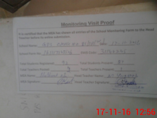 | EMIS Code: 31140245 | Name of School: GPS CHAK NO 85/5-R (W) | |||