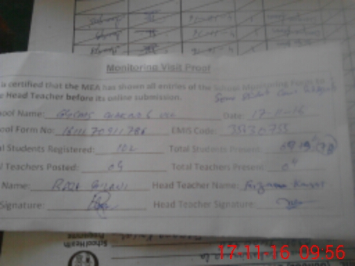 | Attendance Register | Head Teacher | MEA with School | Visit Proof |