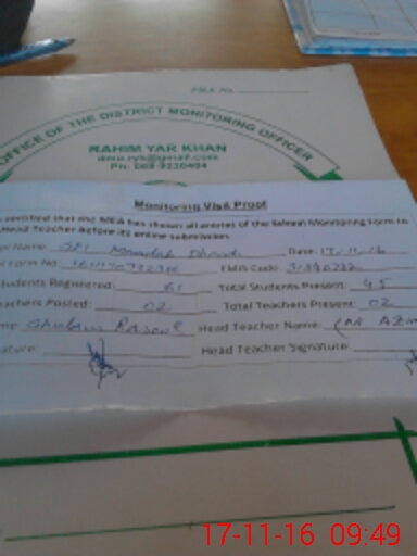 | Attendance Register | Head Teacher | MEA with School | Visit Proof |