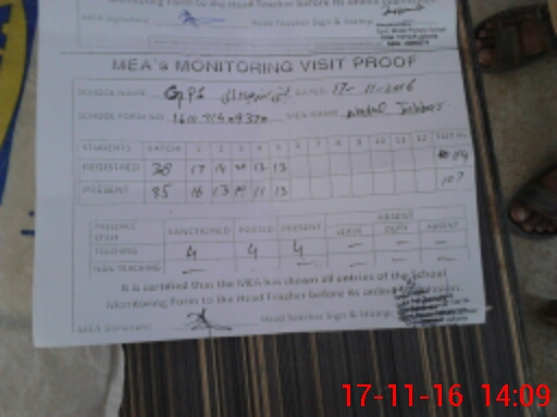 | Attendance Register | Head Teacher | MEA with School | Visit Proof |