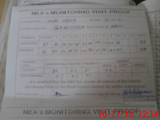 | Attendance Register | Head Teacher | MEA with School | Visit Proof |