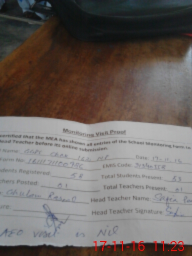 | Attendance Register | Head Teacher | MEA with School | Visit Proof |