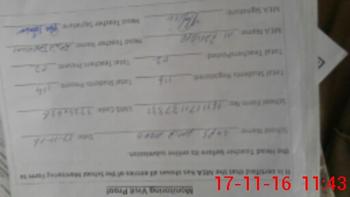 | Monitoring Date: 17-11-2016 | Start Time: 17-11-2016 11:00 AM | End Time: 17-11-2016 11:45 AM | Name of MEA: A-**** MO**** RA**** BU**** (R**** | |