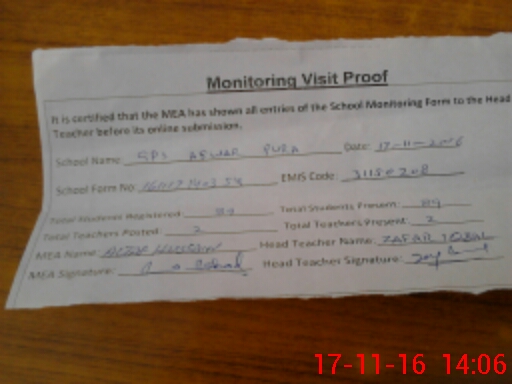 | EMIS Code: 31150208 | Name of School: GPS ASWAR PURA | |||