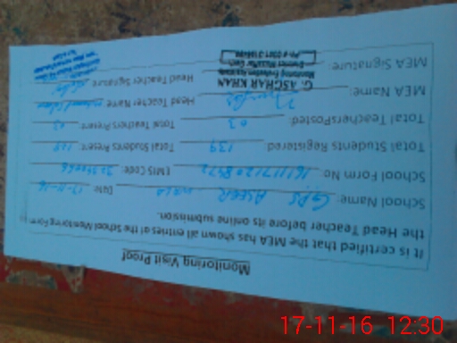 | Certified that this School was Inspected by the Undersigned MEA/DMO Today and the Information Stated Above is as Per Record. | |||||