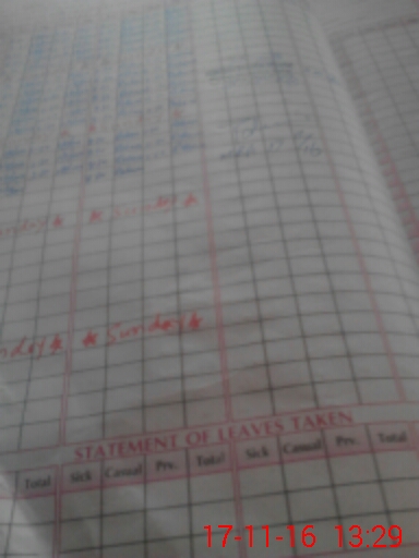 | CNIC | Full Name | Designation | R/C | Absence During Last Calender Month |