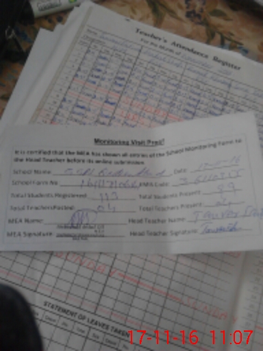 | Attendance Register | Head Teacher | MEA with School | Visit Proof |