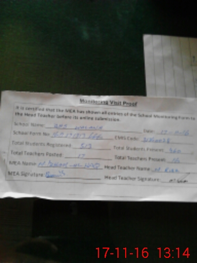 | Certified that this School was Inspected by the Undersigned MEA/DMO Today and the Information Stated Above is as Per Record. | |||||