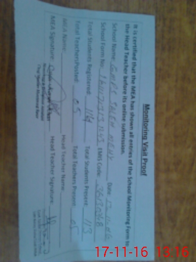 | Attendance Register | Head Teacher | MEA with School | Visit Proof |
