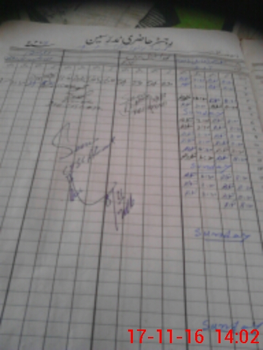 | CNIC | Full Name | Designation | R/C | Absence During Last Calender Month |