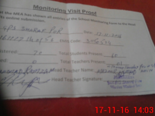 | EMIS Code: 31150524 | Name of School: GPS SHARAF PUR | |||