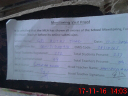| EMIS Code: 38310163 | Name of School: GPS KUTKI THAL | |||