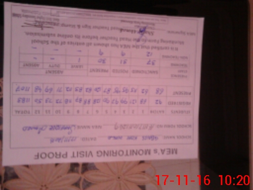 | Attendance Register | Head Teacher | MEA with School | Visit Proof |