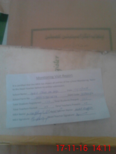 | Attendance Register | Head Teacher | MEA with School | Visit Proof |