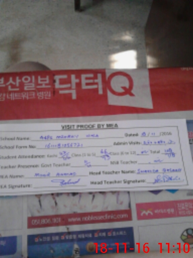 | Attendance Register | Head Teacher | MEA with School | Visit Proof |