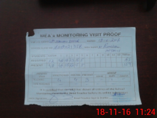 | Attendance Register | Head Teacher | MEA with School | Visit Proof |