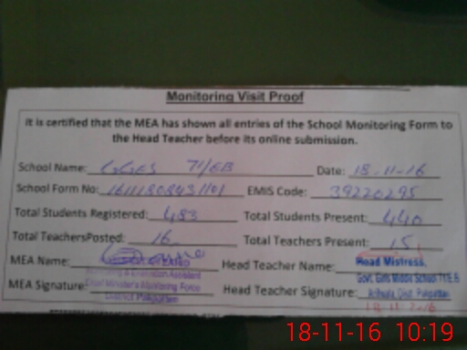 | Certified that this School was Inspected by the Undersigned MEA/DMO Today and the Information Stated Above is as Per Record. | |||||