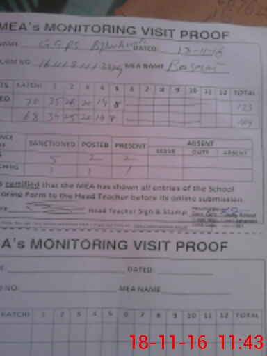 | Attendance Register | Head Teacher | MEA with School | Visit Proof |