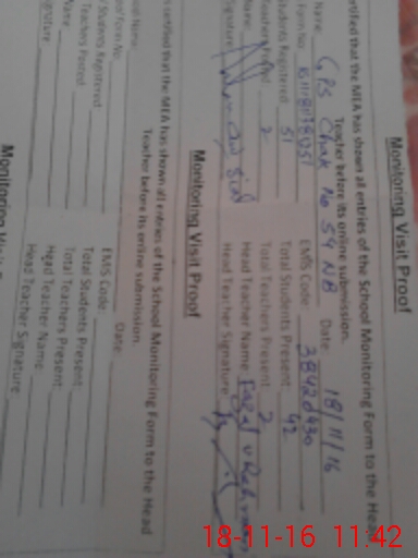 | Attendance Register | Head Teacher | MEA with School | Visit Proof |