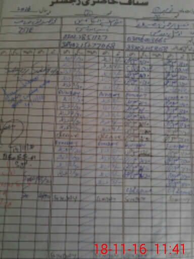| CNIC | Full Name | Designation | R/C | Absence During Last Calender Month |