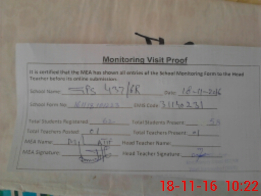 | Attendance Register | Head Teacher | MEA with School | Visit Proof |