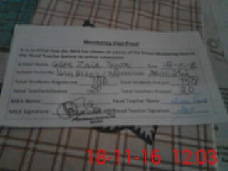 | Attendance Register | Head Teacher | MEA with School | Visit Proof |