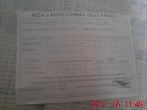 | Attendance Register | Head Teacher | MEA with School | Visit Proof |