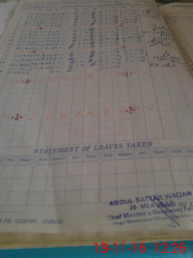 | CNIC | Full Name | Designation | R/C | Absence During Last Calender Month |