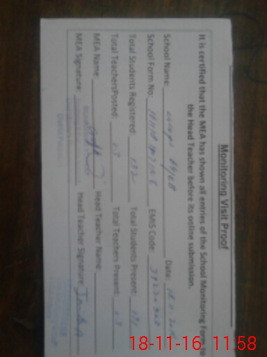 | Attendance Register | Head Teacher | MEA with School | Visit Proof |