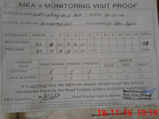 | Certified that this School was Inspected by the Undersigned MEA/DMO Today and the Information Stated Above is as Per Record. | |||||
