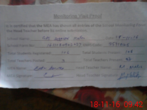 | Attendance Register | Head Teacher | MEA with School | Visit Proof |