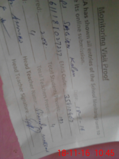 | Name: SA**** RA**** Designation: (School Headmaster's/Headmistress's) PST Phone/Cell Number: 03**** |