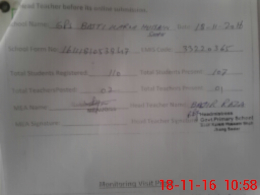 | EMIS Code: 33220365 | Name of School: GPS BASTI KARAM HUSSAIN | |||