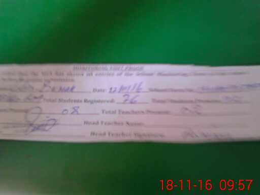 | Attendance Register | Head Teacher | MEA with School | Visit Proof |
