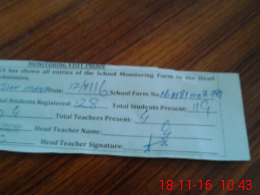 | Attendance Register | Head Teacher | MEA with School | Visit Proof |