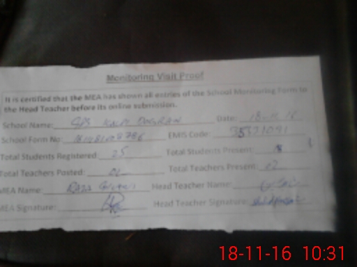 | Certified that this School was Inspected by the Undersigned MEA/DMO Today and the Information Stated Above is as Per Record. | |||||