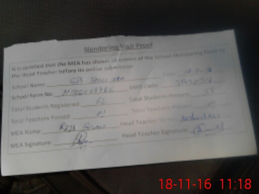 | Attendance Register | Head Teacher | MEA with School | Visit Proof |