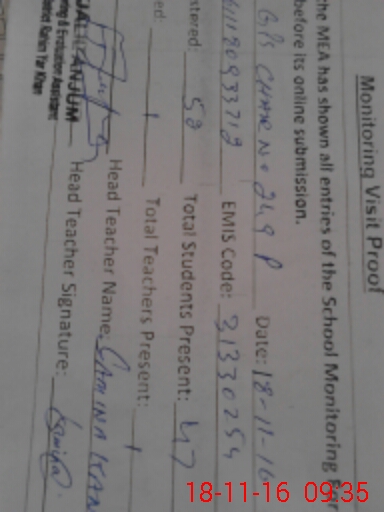 | Attendance Register | Head Teacher | MEA with School | Visit Proof |