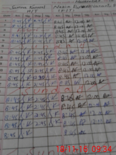 | CNIC | Full Name | Designation | R/C | Absence During Last Calender Month |
