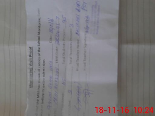 | Attendance Register | Head Teacher | MEA with School | Visit Proof |