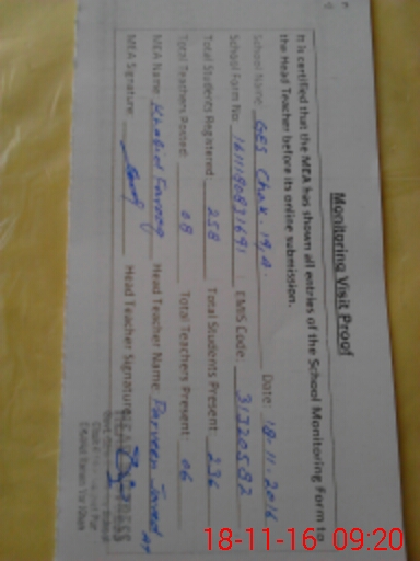 | EMIS Code: 31320582 | Name of School: GGES CHAK NO.19/A | |||