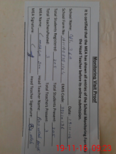 | Certified that this School was Inspected by the Undersigned MEA/DMO Today and the Information Stated Above is as Per Record. | |||||