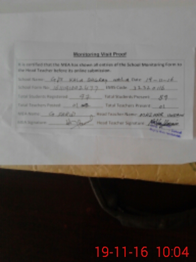 | Attendance Register | Head Teacher | MEA with School | Visit Proof |