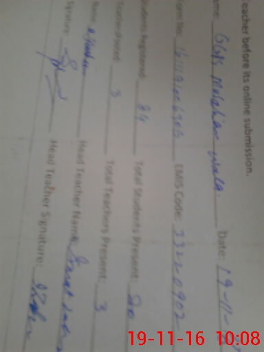 | Name: IS**** ZA**** Designation: (School Headmaster's/Headmistress's) PST/PTC/JV Phone/Cell Number: 03**** |