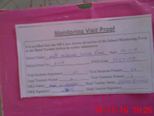 | Attendance Register | Head Teacher | MEA with School | Visit Proof |