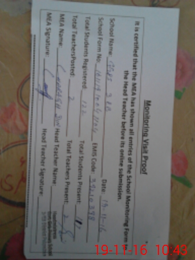 | Certified that this School was Inspected by the Undersigned MEA/DMO Today and the Information Stated Above is as Per Record. | |||||
