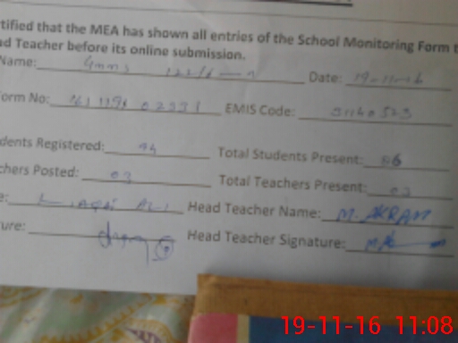 | Name: MU**** AK**** Designation: (School Headmaster's/Headmistress's) PST Phone/Cell Number: 03**** |